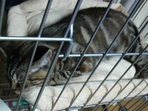 甘えてもケージから出してもらえなかったのですねて寝ております。