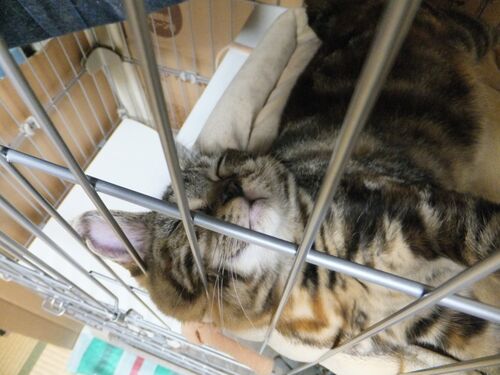 どうしてケージに顔を押し付けて寝るんでしょう・・・