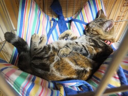 ・・・やはり大きくなってますね。 ハンモックは一応7キロまでOKとなってましたが、 身長制限はないですよね(汗)?