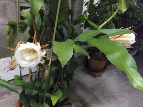 今回は2輪でした。 ちょっと小ぶりかな? でも相変わらずいい香りです。 お隣の親(兄?)株も開花したとのことで、 急遽鑑賞会(飲み会?)となりました。 こういう近所づきあい、いいですよね!