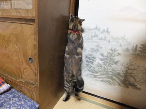 大きくなって力も付き、 多少の隙間があれば自力で扉を開けるようになりました。 脱走注意です!