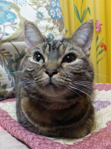 虎娘、見事な二頭身。 これじゃ あの世界一有名な猫ロボットの頭の大きさは 現実じゃかなりのものでしょうねえ。 え?はいはい、二頭身じゃなくて 完璧に香箱ってるだけですよねー。
