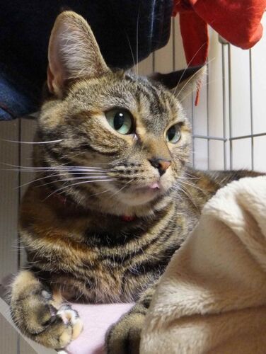 たまにではありますが、 一旦舌をしまい忘れるとなかなか引っ込めません。 「虎娘、ほら、舌出てる、舌!」と指差して教えたのに…。 いや、そっち見てって言ったんじゃないのよー! 本猫は全く気にしていないようでしたが 乾燥とか心配しなくていいのかなー…
