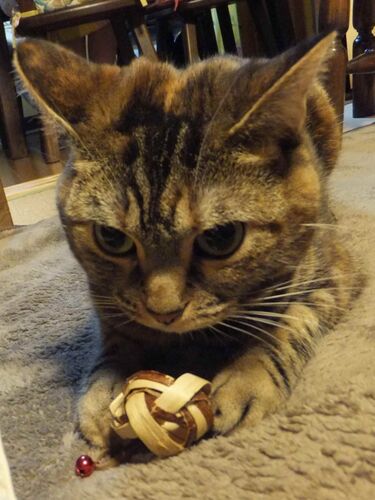 暖かくなってきたからか、 遊べ遊べ要求がすさまじいです。 とりあえずまたたびボールで時間稼ぎ。 ちょっと待っててねー。