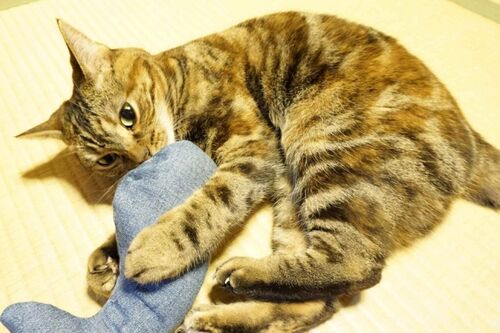 Ka-chiによりくじらとして生まれ変わったまたたびポワゾン。いきさつはこちら。 Ka-chi、久々に腕をふるう(そのいち)。 Ka-chi、久々に腕をふるう(そのに)。 そして今も虎娘のお気に入りです。 お気に入りすぎて既に毛羽やら穴やらちらほらと…(汗)。 近々く…