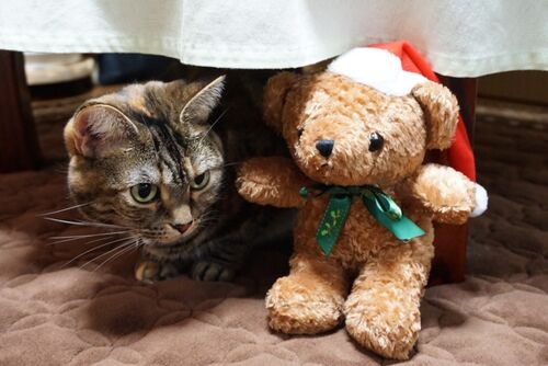 ああ、それは明日が期限切れの商品券があったからって Ka-chiが買ってくれたクマさんですよ。可愛いでしょ? ・・・ええ、そんなにアピールしなくても もちろん虎娘の方が可愛いですよ(苦笑)。