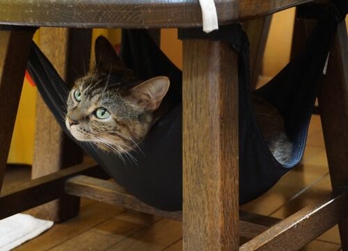 おお、ヒトドモも忘れかけてた(こら)椅子用ハンモックに!うんうん、ながーく使っていいのよ、勿体ないし(こら)。