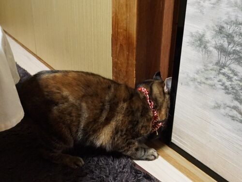 頭をねじこんで扉を開く虎娘。出来れば頭は違う使い方をして欲しいのですが…(汗)。