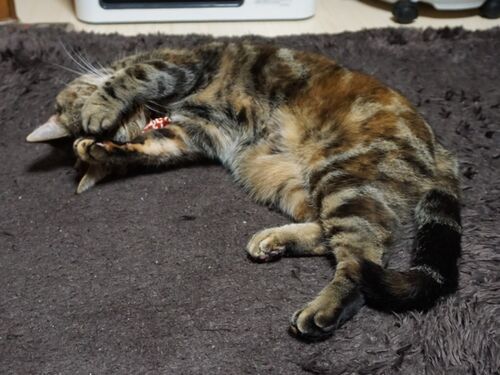 またたびおもちゃを渡して遊ばせないと まずお腹は拝めません。