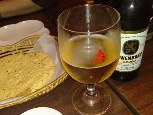 先日、久々に会社の先輩と愚痴り会(苦笑)を開催。 もちろんインド料理だよねーと言う事で 今回は茅場町のSananに行ってみることに。 夜は二人とも初めてです。店には私たち二人だけですが(慣れてる) とりあえずビール(飲んでから撮る)。 パパドが付くのはも…