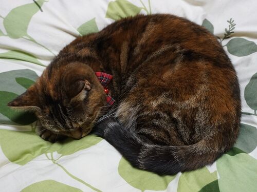虎娘がベッドに根を張る季節となりました。 ど真ん中を占拠するのでなければ話し合う余地もあるのですが…(汗)。