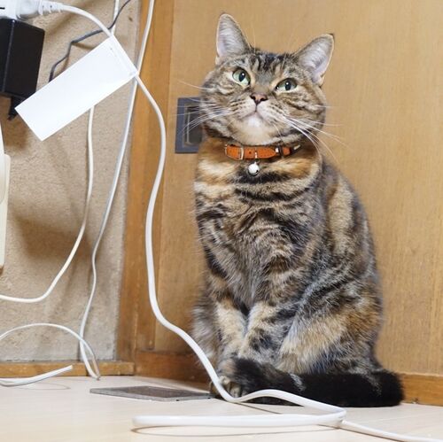 暖かくなってきましたので 居間のヒーターを片付け、植木鉢を庭に出しました。 スペース空いたねーと言っていたのですが、 何故か虎娘がそこに陣取るように。 そしてこちら(ヒトドモ)をじーっと見つめてくるのです。 絶対何か言いたいんだと思いますが、 今…