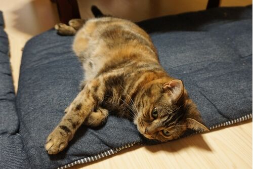 今年の梅雨は辛い…とにかく湿気が辛い… というわけで色々サボりがちです。ダメですねえ。 一方虎娘。もちろんこちらも毎晩座布団を占拠しております。 ところが昨晩いつも通りに 洗面所でRu-chiがドライヤーをかけ始めると 突如起き上がって洗面所へ一直線。…