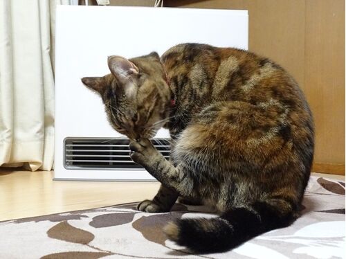 昼間は場所によっては暖かすぎるくらいですが、 さすがに朝晩は寒くなってきました。 ホットカーペット出したり、ガスファンヒーター出したりと 部屋の見た目がようやく冬仕様になりました。 でもまだ窓はほとんど結露見ないし、暖冬になるのかな? 虎娘は暖…