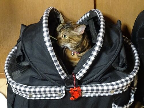 最近、気づくとキャリーに飛び込んでいる虎娘。 そうだね、そろそろお出かけの時期だもんね。 当日も素直に入ってちょうだいね(多分無理だと思うけど…)。